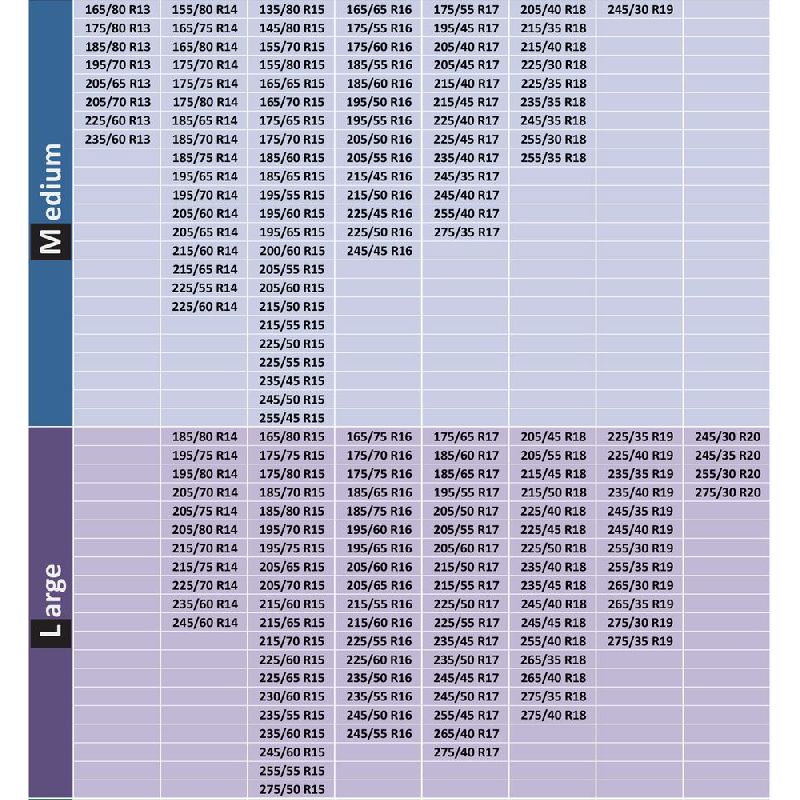 CONFORMI ALLA LEGGE SULL'OBBLIGO DELLE CATENE DA NEVE LEGGE 2007/46/EC OBBLIGO DI CATENE A BORDO DAL 15 NOVEMBRE CALZE OMOLOGATE TUV/ONORM PRIMA DI PROCEDERE CON L'ACQUISTO CONTROLLARE CHE LA CALZA SIA COMPATIBILE CON LE DIMENSIONI DEI VOSTRI PNEUMATICI |